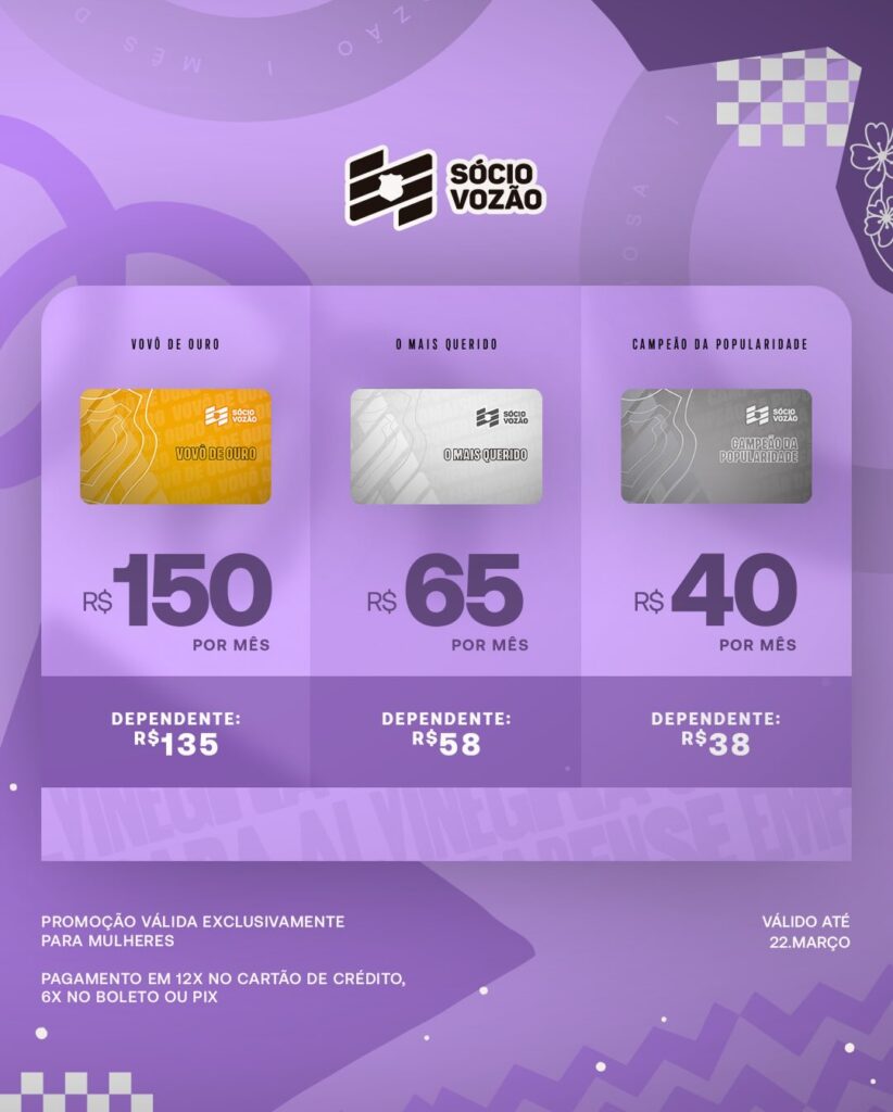 Com valores a partir de R$ 38 para adesão ou renovação, a campanha vai valer durante o mês de março. As torcedoras podem aderir ou renovar seu plano por meio do site Sócio Vozão e também nas Lojas Vozão.