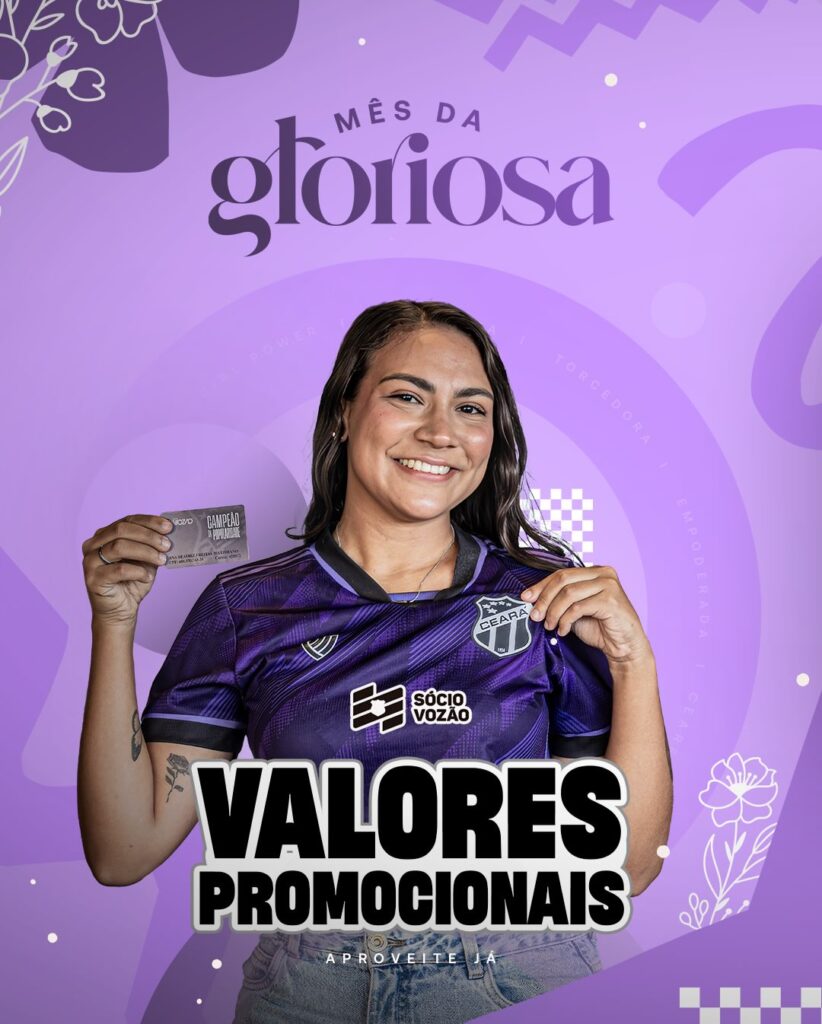 Em homenagem ao Dia da Mulher, comemorado no dia 8 de março, o Ceará lançou uma ação promocional para as Gloriosas, plano feminino que integra o quadro do Sócio Vozão para adesão ou renovação.