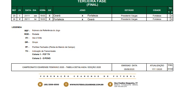 O duelo de volta acontece na próxima terça, dia 25. Jogo será no estádio Presidente Vargas (PV), às 19h, com mando de campo do Fortaleza.
