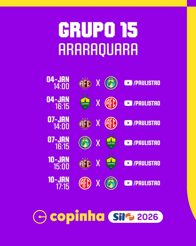 O Quixadá também tem estreia marcada para o dia 4 de janeiro. O adversário será a Ferroviária-SP, às 14h, com transmissão no YouTube do Paulistão. As partidas do Canarinho do Sertão na fase de grupos serão na Arena da Fonte Luminosa, em Araraquara.