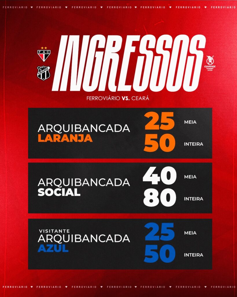 INGRESSOS PARA FERROVIÁRIO X CEARÁ