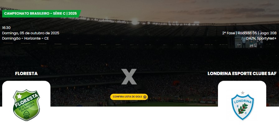 Floresta x Londrina-PR se enfrentam, às 16h30 deste domingo (5), em confronto direto válido pela 5ª e penúltima rodada da fase quadrangular do acesso da Série C do Campeonato Brasileiro, no estádio Domingão. A transmissão será por meio da DANZ e SportyNet+.