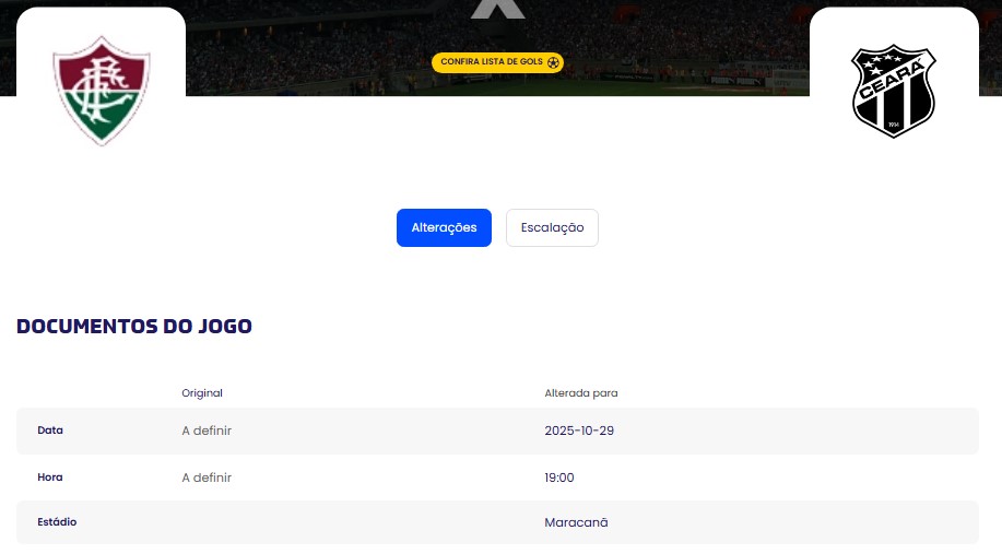 O confronto Fluminense x Ceará, válido pela 12ª rodada atrasada da Série A do Brasileirão, enfim, ganhou data. A CBF (Confederação Brasileira de Futebol) divulgou, nesta sexta-feira (3), que o duelo está marcado para o dia 29 de outubro, às 19h, no estádio Maracanã, no Rio de Janeiro.