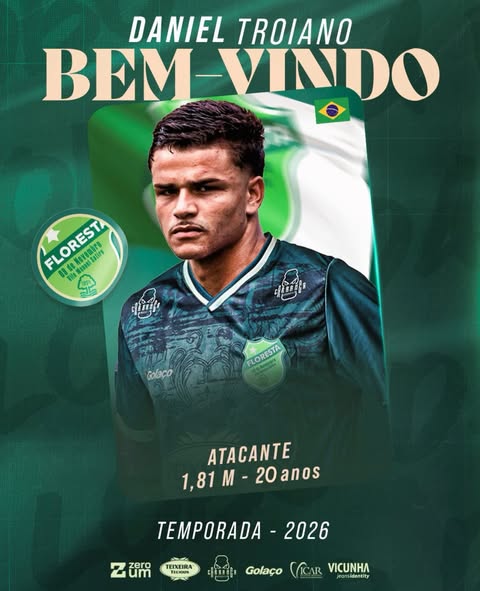 O Floresta EC anunciou, nesta sexta-feira (19), a contratação de Daniel Troiano. O atacante de 20 anos chega por empréstimo do Fortaleza EC com contrato até o fim da Série C 2026.