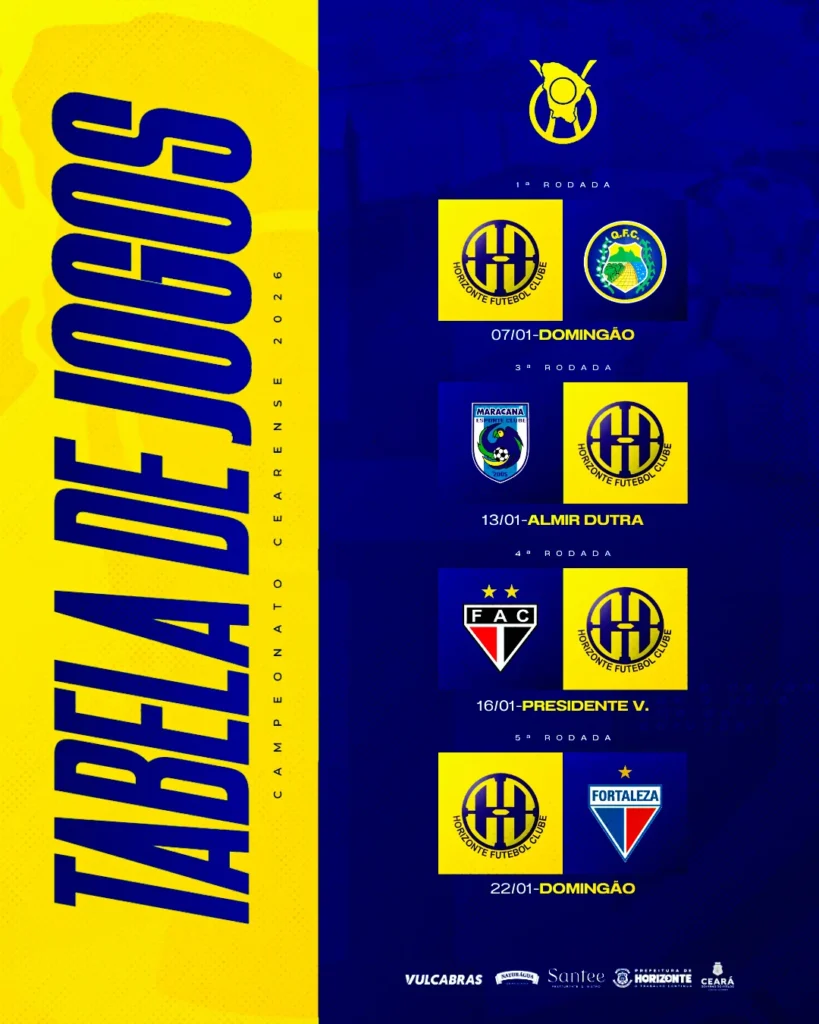 O Horizonte FC já tem 30 nomes confirmados para a temporada 2026, entre contratados e renovações. O Galo do Tabuleiro vai disputar o Campeonato Cearense no próximo ano.