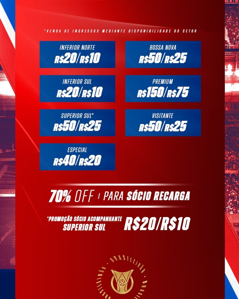 • Superior Sul: R$ 25 (meia) | R$ 50 (inteira)