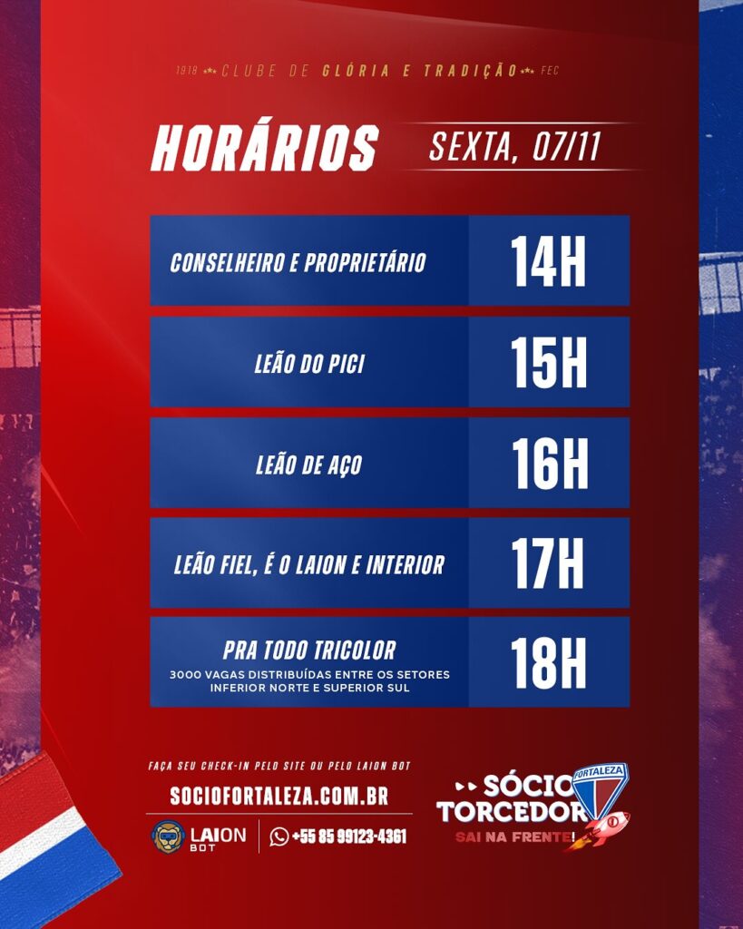 Seguindo na vice-lanterna do Campeonato Brasileiro após empate por 1 a 1 com o Ceará, o Tricolor do Pici liberou o check-in para sócios-torcedores e iniciou a venda de ingressos, nesta sexta (7), para o embate com a equipe gaúcha.