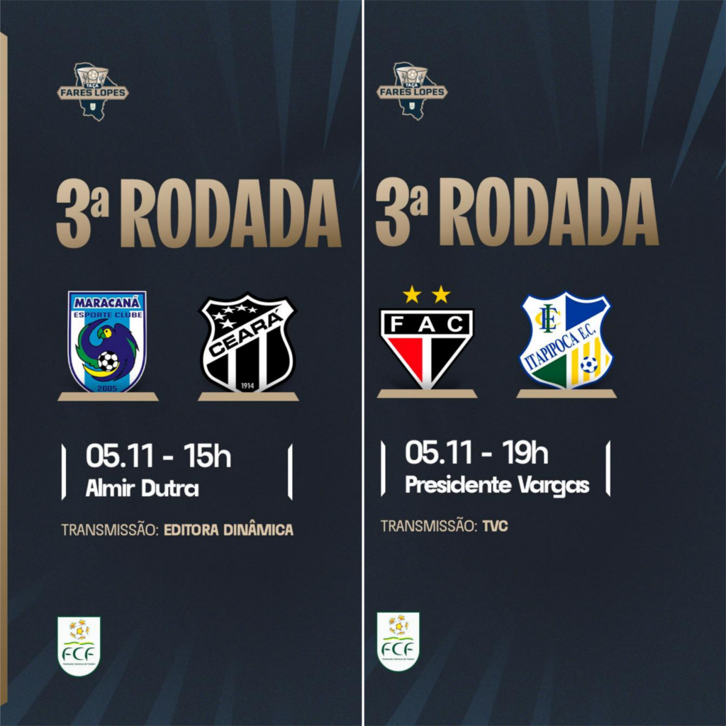Mais dois jogos movimentam a terceira rodada da Taça Fares Lopes. Nesta quarta-feira (5), Maracanã x Ceará, às 15h, e Ferroviário x Itapipoca, às 19h, medem forças.