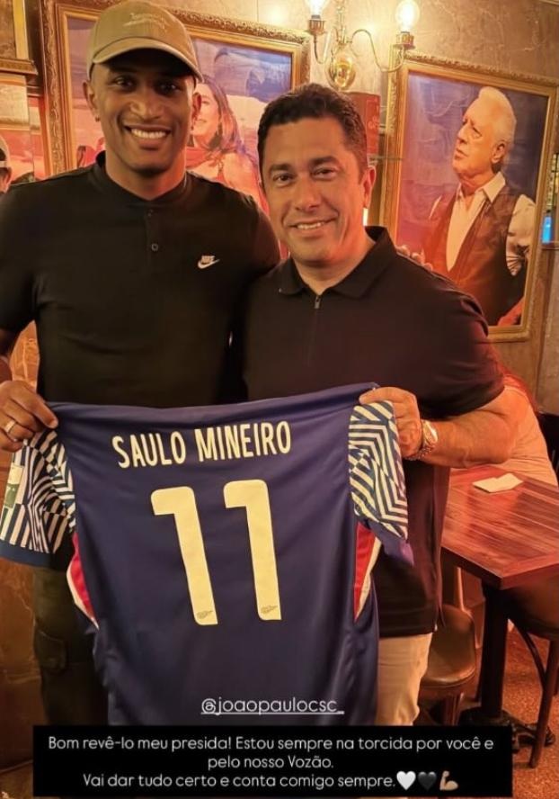 Atacante do Shanghai Shenhua, da China, Saulo Mineiro reencontrou João Paulo Silva, presidente do Ceará. Os dois estiveram em um jantar, na noite da última sexta-feira (12), e o jogador publicou fotos do momento nas redes sociais, declarando seu apoio do mandatário e ao Vozão.